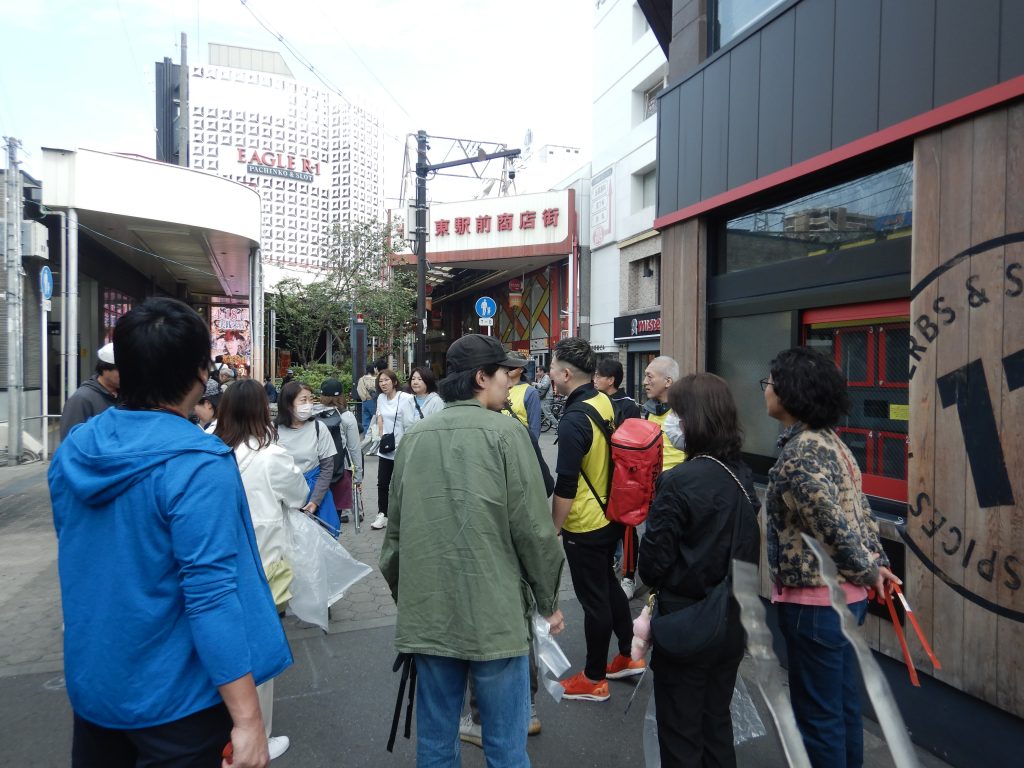 午前9時から阪急十三駅付近の清掃のボランティアに参加。