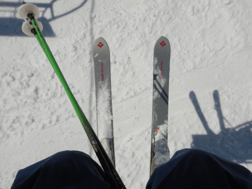 斎藤さんのウエアはノースフェイス、そしてスキーはベクター。