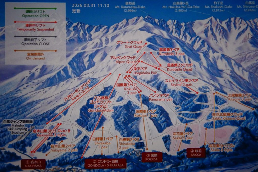 午前11時頃には全てのリフトが運休していました。