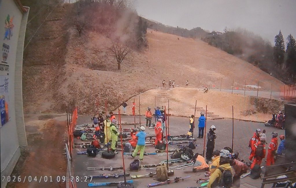 昨日の暖かい雨でスキー場上部も雪解けが進んだみたい。