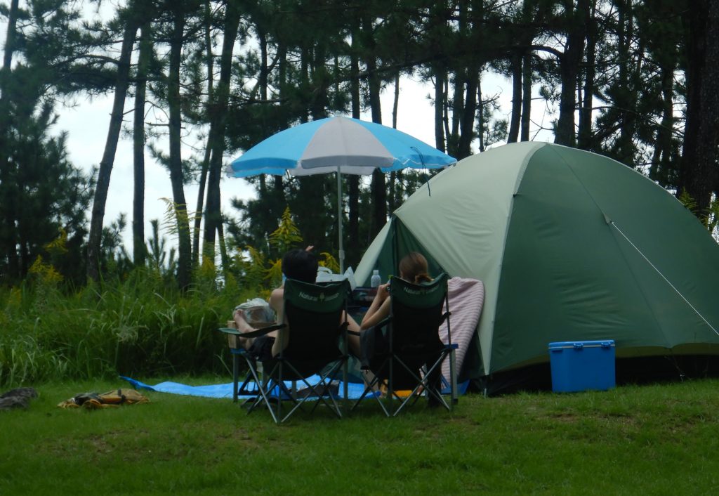隣のテントのカップルは雨も上がりリラックス。