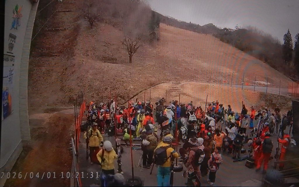 昨日の暖かい雨でスキー場上部も雪解けが進んだみたい。