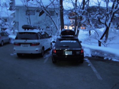 駐車場のUGレガシィには約15cmの新雪が積もり、