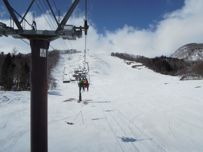 スキー場上部も陽射しが強く気温は高いぐらいですが、
