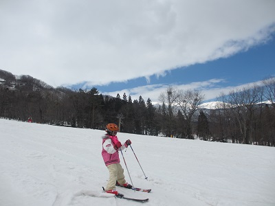 6歳の馨子ちゃんも真っ直ぐに滑り降りて来ます。