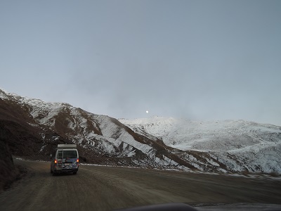 スキー場へ出かける時間はまだ月が出ています。